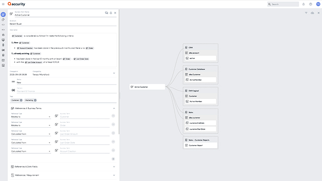 Competitors like Collibra and Atlan promote AI discovery, but their focus is mostly on metadata enrichment. Alation uses AI for curation, but it does not natively support multilingual linkage. Accurity Business Lineage AI Suggestions goes further. It directly connects the business glossary with the data catalog across languages with confidence-scored proposals that users review and approve.