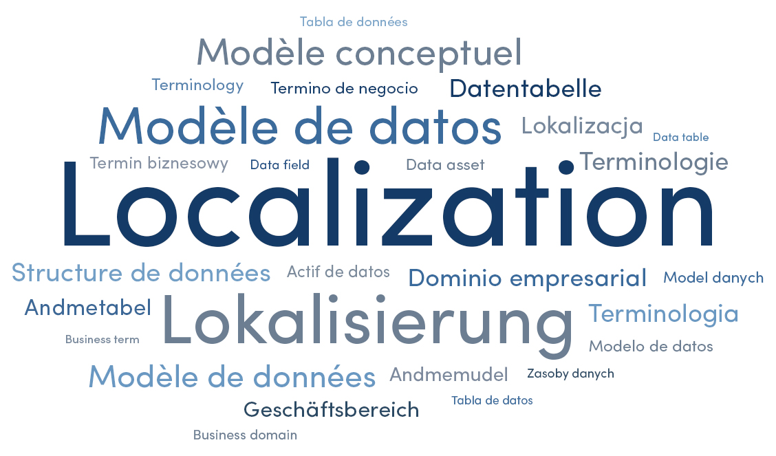 But localization is only the first step. Every organization also develops its own vocabulary for describing data and governance structures. Some call it a Business Data Model, others a Conceptual Model. Some say Data Field, others Column. Some prefer Data Table rather than Data Structure. When a tool forces a single vendor-defined language, collaboration slows and trust is harder to build.